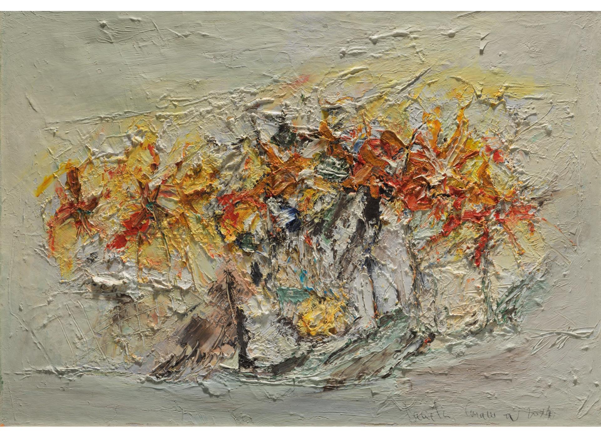 Rooted in the coexistence of lights and shadows, this work is graced by bright tones and soft, warm nuances that evoke a poem of the spirit through plasticity.